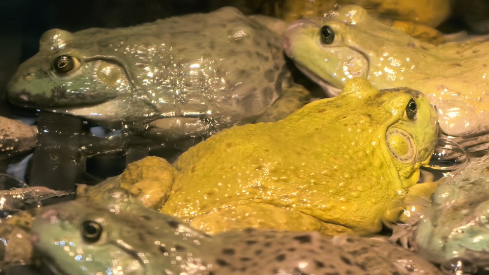 这里居然有活蹦乱跳的牛蛙,还是按斤卖的!牛蛙旁边,更是满眼的鱼缸: