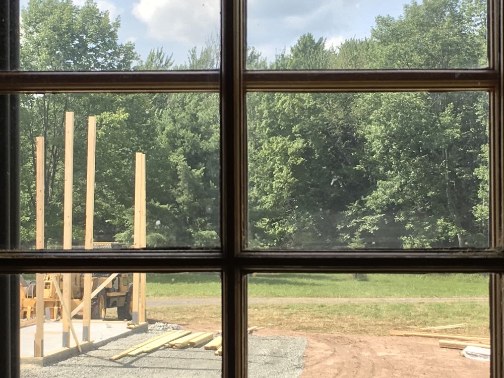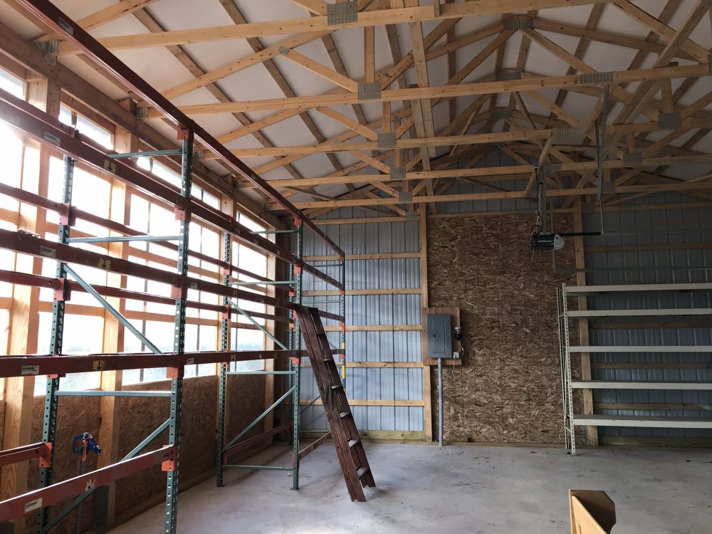 室内,我买的旧仓库的架子。这种架子在美国有专门公司卖,他们去拆旧厂房和超市。非常结实便宜。主要的窗户面南,是采光保暖材料,没使用玻璃。
