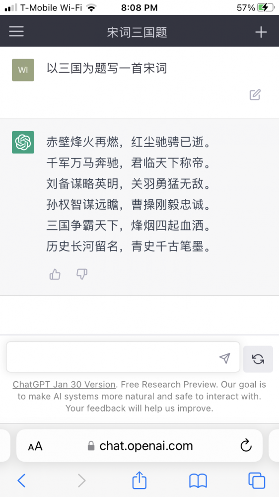 另外,AI还创作了一些诗词。水平嘛....将就一下吧。