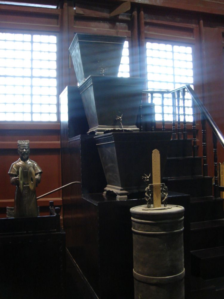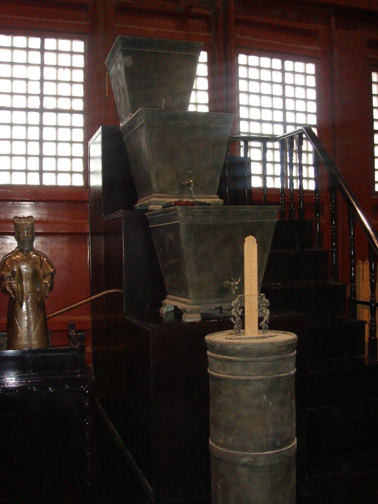 鼓楼。铜刻漏。古代计时工具。