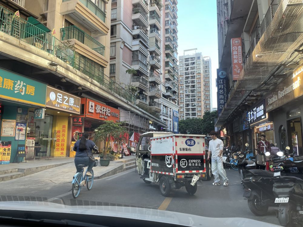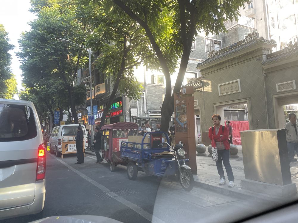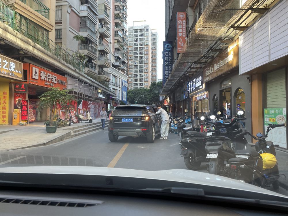 我们坐的网约车去;离目的地还有六百米,前面的路虎熄火,后面的车全部都开不过去,只好下了车、走路过去。