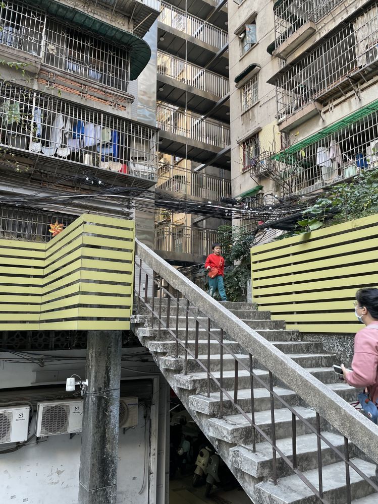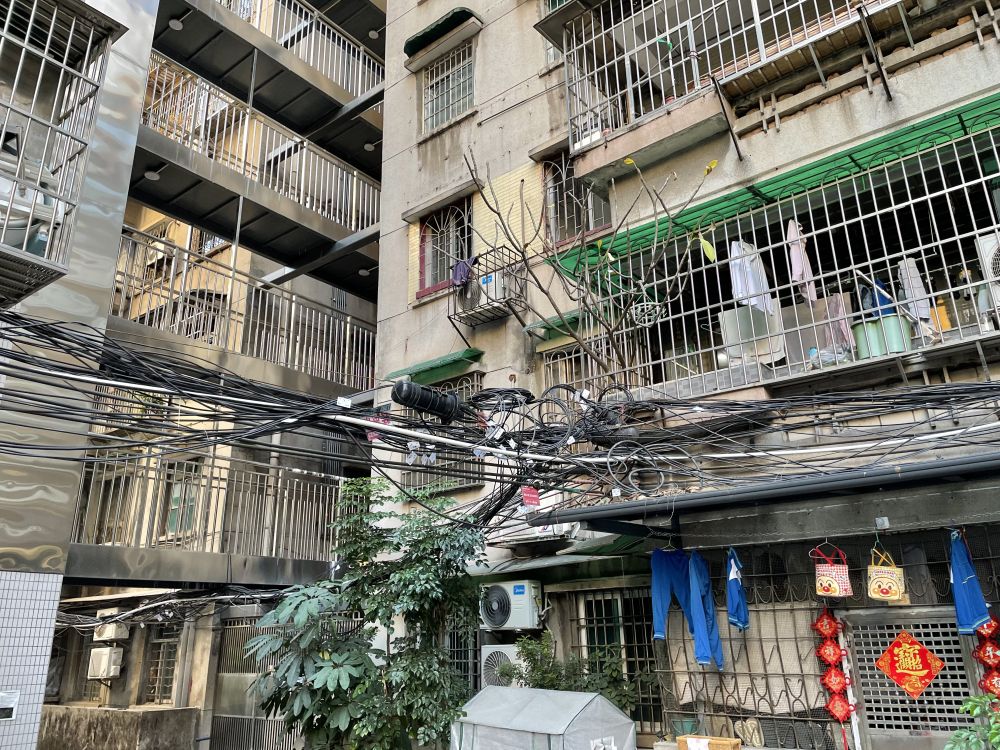 现在的周门及附近环境。太太说,除了新建了电梯、绿化带改为停车场,该小区没有什么变化。