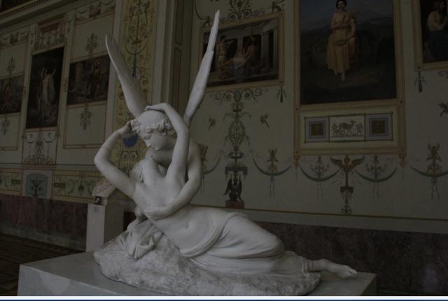 (冬宫,卢浮宫各有一尊,这是你看一眼一定一辈子忘不了的作品。Antonio Canova's sculpture Psyche Revived by Cupid's Kiss, first commissioned in 1787 by Colonel John Campbell,[2] is a masterpiece of Neoclassical sculpture, but shows the mythological lovers at a moment of great emotion, characteristic of the emerging movement of Romanticism. It represents the god Cupid in the height of love and tenderness, immediately after awakening the lifeless Psyche with a kiss.)