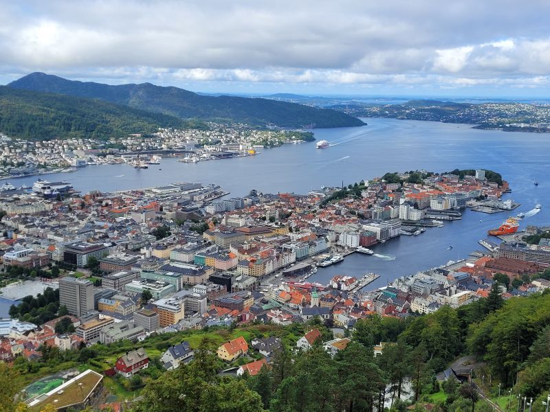 卑尔根,挪威第二大城市, 是霍达兰郡(Vestland)首府,也是挪威西部最大的城市,坐落于挪威西海岸陡峭的峡湾线上,依山面海,北有峡湾之王松恩峡湾 (Sognefjord),南临绮丽的峡湾之后哈丹格尔峡湾(Hardangerfjord),持王携后,冠有通往峡湾之门户的美称,是座风光妩媚的港湾之城。它曾在2000年被联合国评选为“欧洲文化之都”,这里气候温和多雨,亦有“雨城”之称。