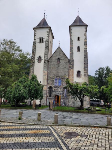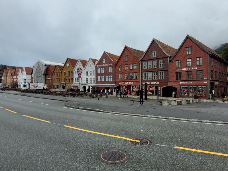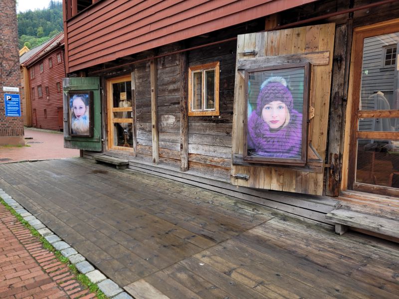 布吕根最有代表性的的景观是它那一排位于港湾北岸的木结构房子,他们以暗红色, 白色,和砖黄色为主,是地标性建筑群,摄影留念的地方(当然要拍摄这排木房子,码头对面是最理想的地方),其附近有教堂,博物馆,纪念品店、商店、餐馆和酒吧等设施。其中最古老,最高的建筑是双塔圣玛丽教堂。在一家画店我同店员聊起了Sissel Kyrkjebø, 她是我最喜欢的歌星之一,生于卑尔根。只是她出生的地方不在此区。坦白说,来挪威之前我对挪威所知甚少, 但是我知道Sissel是挪威人。聼她唱苏尔维格之歌是一种超级享受。个人以为若要被冠以世界级歌星的称号,需要达到她的水平才可。在一个皮草店前,。挪威的美女整体水平如何?我有自己的观察,这里不展开讨论,留个伏笔。