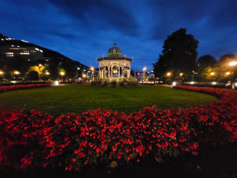 晚饭后,我们散步至城市的中心湖(Lille Lungegårdsvannet)边。这个不大的湖估计有5平方英亩。据说以前它的面积比现在大得多,只是随着人口的增加,人们不断的填湖造地,如今水面才缩小成了现在这个规模。挪威是一个非常节能的国家,卑尔根是第二大城市,然而它夜间的灯火并不很明亮,显然是为了节能。如此,它显得少了些张扬,多了些神秘。随后我们在城市中又逛了一阵,无疑这是一个非常迷人的城市。一个城市的夜间景色定义了这个城市的浪漫程度。