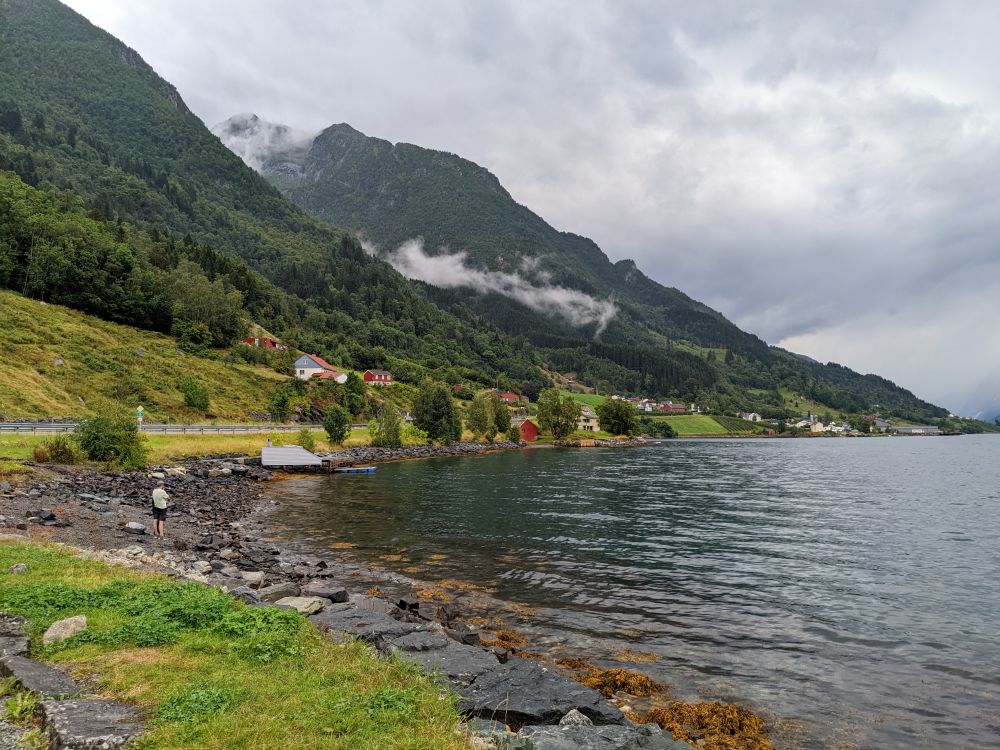 而后我们沿13号公路一直北上,公路紧贴着索尔峡湾,沿途皆是峡湾景色。有意思的是虽然挪威仅有500多万人口,但是人们散落得到处都是,在很偏僻的地方总能看到几间漂亮的房子点缀山河的景观。