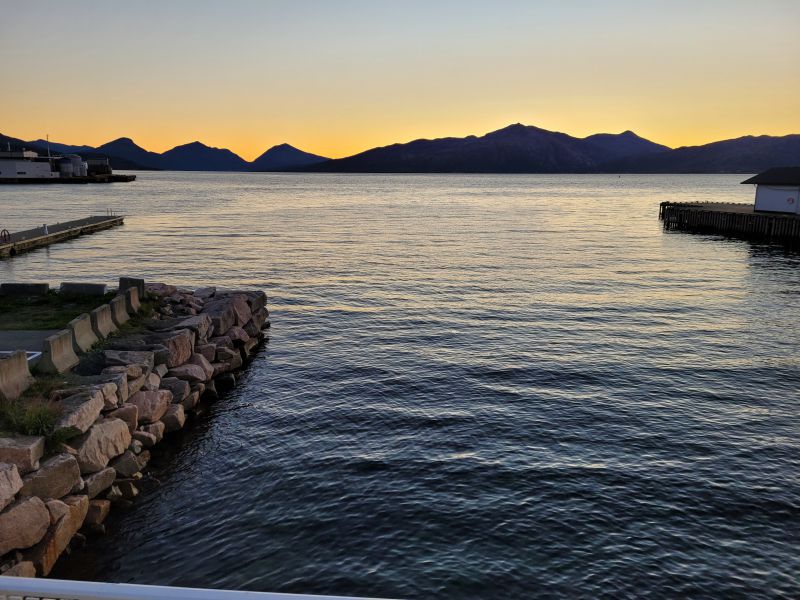 早饭后,我们便开车从罗丁根Lodingen出发了,沿着E6公路一直北上。还记得吗?我们在前面说过挪威神话中最大的神叫奥丁,他有一匹能横跨天空的神马斯雷普尼尔(Sleipnir),我曾经祈求过奥丁将神马借我一用。现在我的车又神马附体了,看来是一次向神祷告,次次上路灵验。一路上好山好水好风光,没有惊动警察。4个小时后,我们到达了特罗姆瑟。