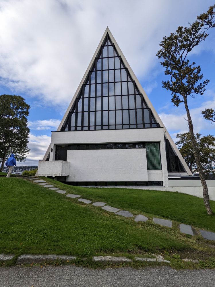 从缆车下来之后,我们又去了市中心,在那里闲逛了一阵,来到了特罗姆瑟天主教堂Tromsø Cathedral,可惜不开门,无法入内参观。