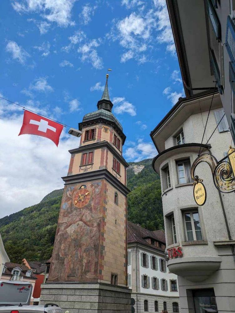 塔楼高达约20米,建于13世纪,以其古老的石砌结构和独特的钟楼闻名。登塔可以俯瞰小镇全貌,给我印象深刻。瑞士漂亮的小镇很多,欧洲许多国家也同样。