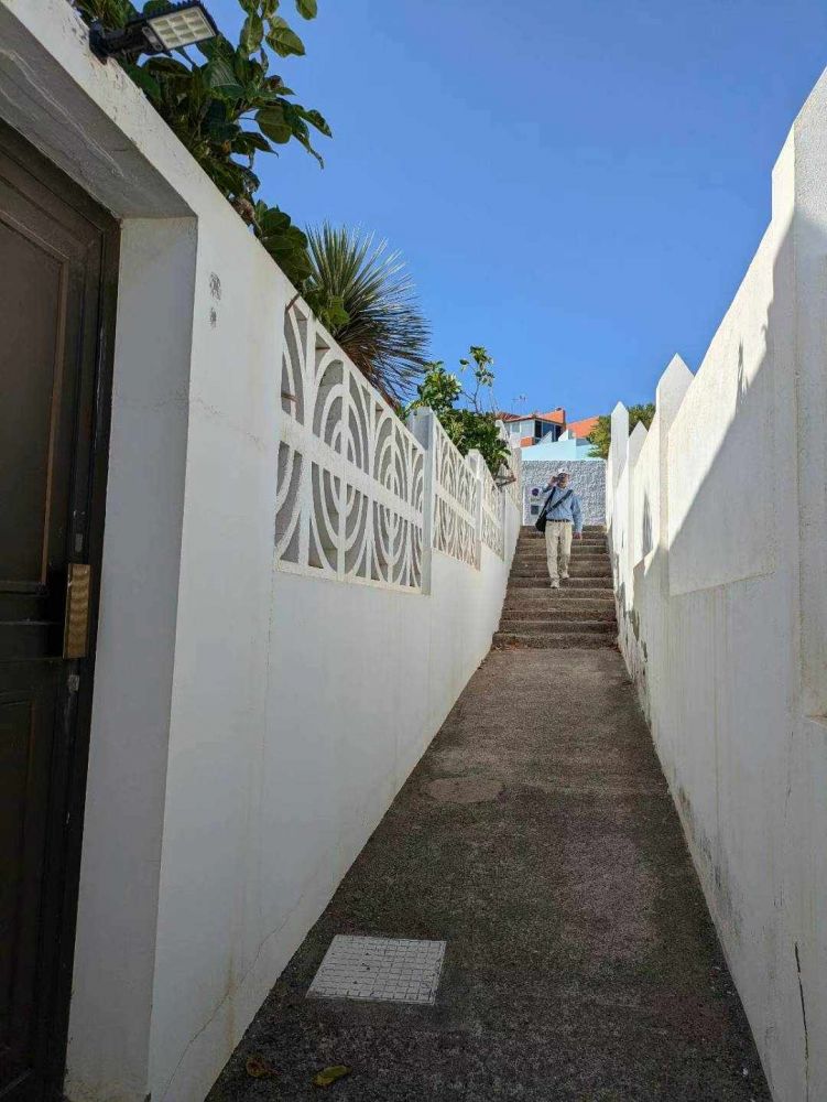 第三天早上我们参观了拉斯帕尔马斯的核心地带,即维格塔老城区(Vegueta)一带。这里是城市的历史起点,拥有鹅卵石街道、古老的教堂和殖民时期的建筑。著名的圣安娜大教堂(Catedral de Santa Ana)是不可错过的景点,其塔楼提供俯瞰整个城市的绝佳视角。我们登上钟楼,360度地享受了很久养眼的景观。蓝天白云,海面银光万顷,城市建筑色彩明快。登临送目,不由地我想起了我的旅游“座右铭”, 先天下人之乐而乐,后天下人忧而忧。这是玩笑。