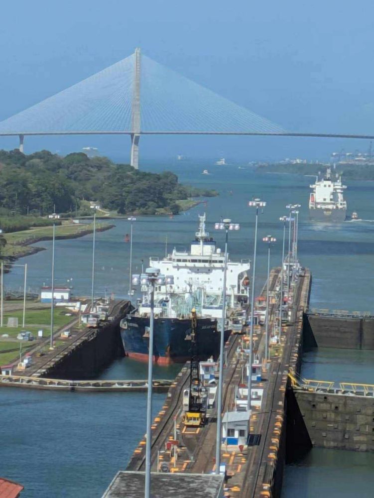 船只从大西洋(科隆港)或太平洋(巴拿马城)进入运河。