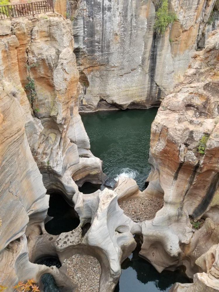 伯克好运壶穴位于南非布莱德河峡谷(Blyde River Canyon),是特雷尔河(Treur River)与布莱德河(Blyde River)交汇处的地质奇观,属“全景之路(Panorama Route)”重要景点,距克鲁格国家公园(Kruger National Park)约40-50公里。此处以“壶穴”地貌闻名——河流旋涡长期冲刷岩石形成圆形或椭圆形深坑。游客可经步行桥俯瞰壶穴,欣赏壮丽峡谷景色(通常不可下至底部)。