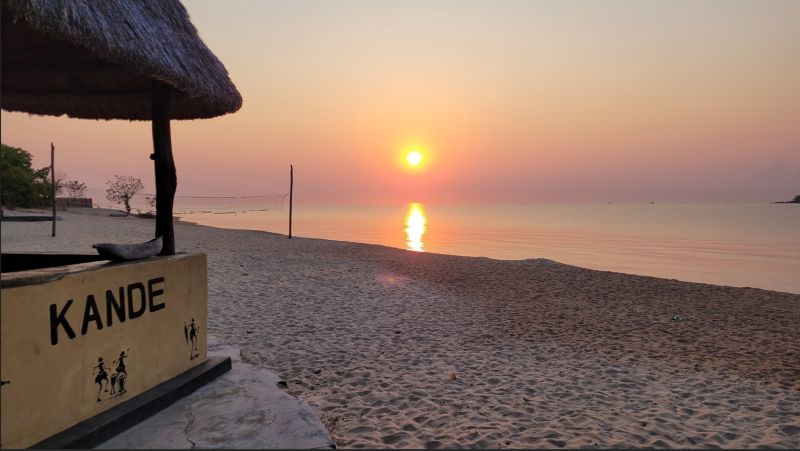 我们在堪得沙滩(Kande Beach) 停留了一天,它位于马拉维中部马拉维湖(Lake Malawi)畔,此湖是非洲第三大淡水湖,面积约 29,600 平方公里,湖长约 580 公里,宽度在 16 至 80 公里 之间,最深处可达 706 米。它是非洲大裂谷湖泊之一,水域横跨马拉维、莫桑比克和坦桑尼亚三国。堪得沙滩是一个度假的地方,提供浮潜、划船和骑马等活动。浮潜的地方鱼不多,也不很漂亮,湖边的树木也不茂密,日出日落景色还算是漂亮,总体景色一般。