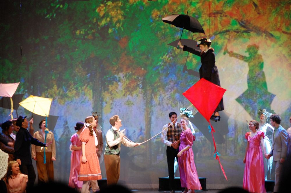 几天前去小儿子的学校看他们演出。 他们每年要上演一部歌舞剧,全校的同学都来参加。演员,乐队 是audition 选出的。舞台背景,服装,灯光,化妆等等都是学生们自己制作和完成的。用一个月的时间排练好。今年排练的是Mary Poppins。小儿子是作为乐队成员参加演出的。在这一个月里他每天早出晚归,紧锣密鼓的参加排练。我们看在眼里,乐在心里。为他中学里能参与和经历这样的排练演出活动感到高兴。