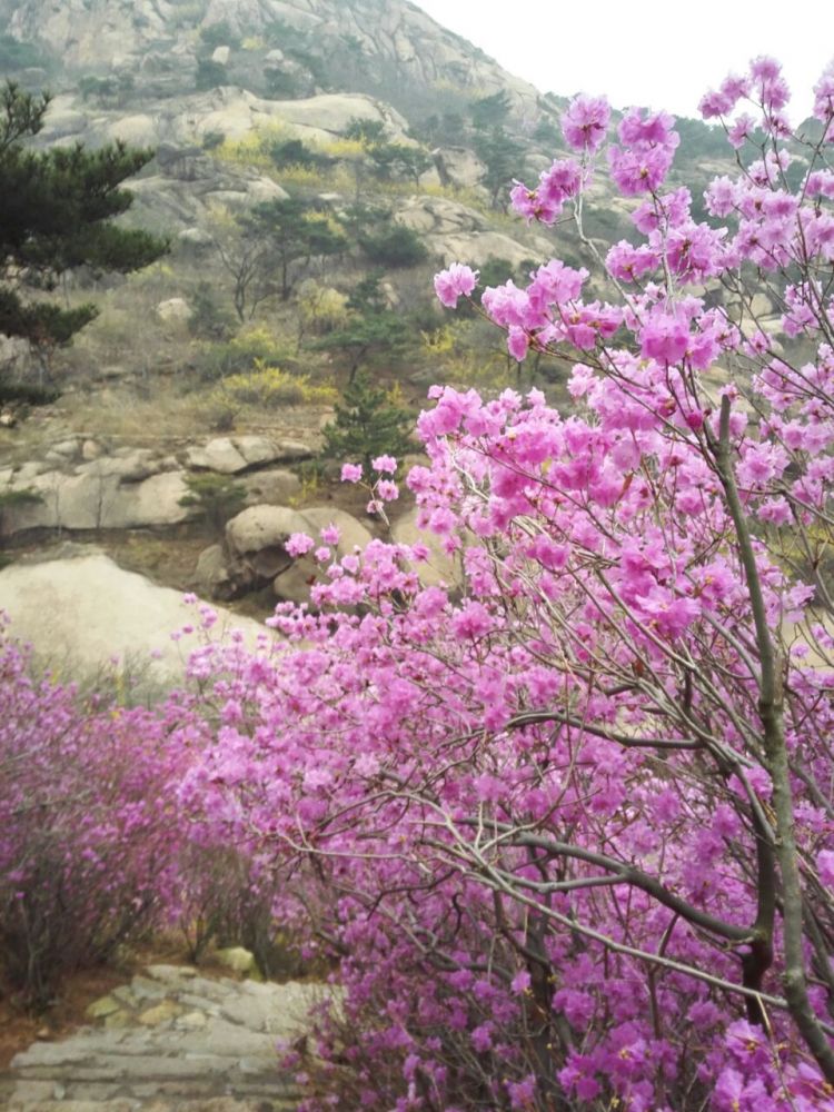 星期四的时候,终于看到的太阳。由小姑姑开车带我们来到30里以外的大珠山,去看那里杜鹃盛开的模样。4月初,姹紫嫣红的杜鹃衬着铿锵有力的山石,交相辉映,错落有致地分布着,宛如仙境。连绵不断的粉红色杜鹃密密茫茫,争奇斗艳,宛如一片艳丽的海洋。