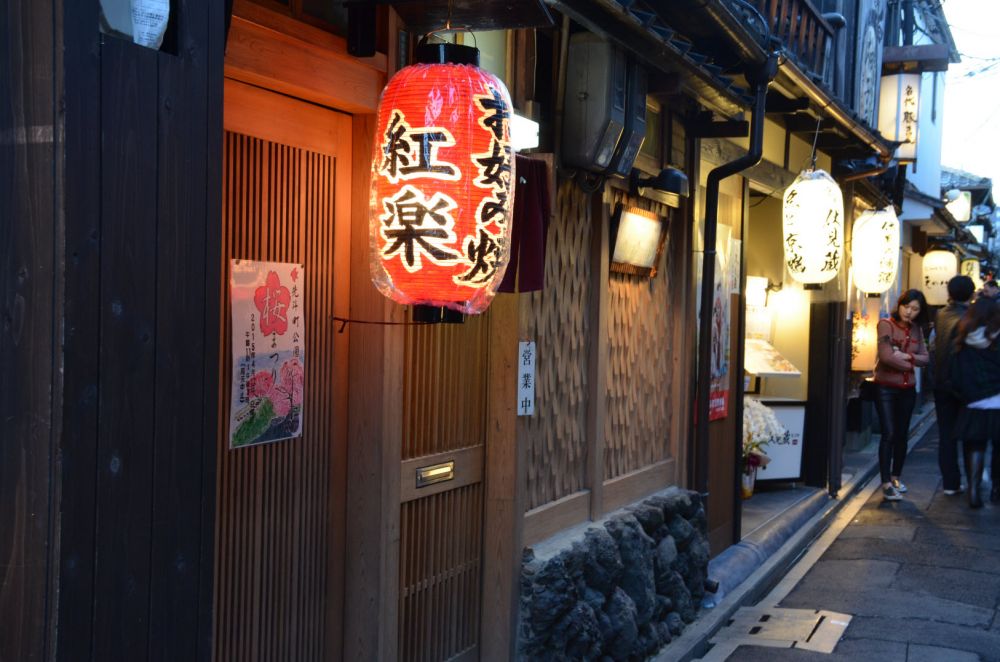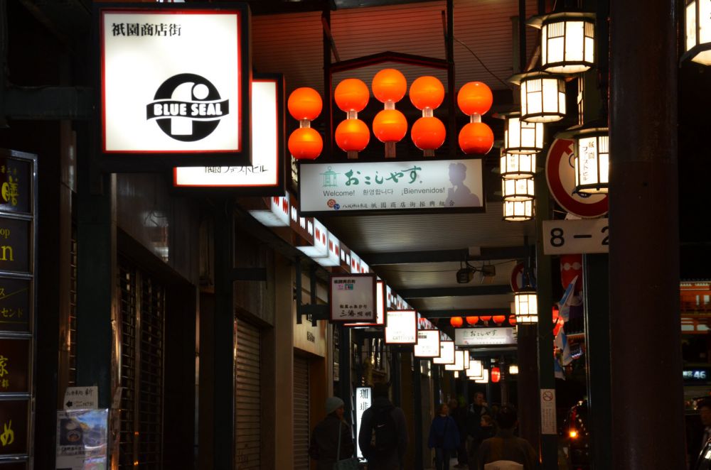 踏着落日的余晖,我们离开了八板神社。慢步走在衹园商业区。夜幕降临,花见小路上灯笼高挂,人来人往,热闹非凡。我们的心也被徐来的风,宁静的夜,和淡雅的美食融化了,忘返的思绪留在了衹园的街头巷尾。