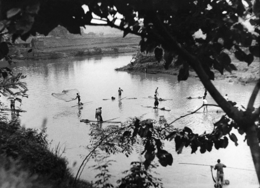 我沿凄溪向北,穿过丛林中一条山区公路,行进二十余公里,突见一片清澈碧绿的湖水。近处,一艘机帆船满载乘客正向彼岸驶去;几只渔船上的渔民正在烟水弥漫中撒网,它漾起的一层层轻柔的细浪,象绿色的绸缎在向外波动。岸边的群山、竹林,林间的农舍,湖中的几十座小岛,交映着万顷绿水,宛若一幅迷人的山水画。
