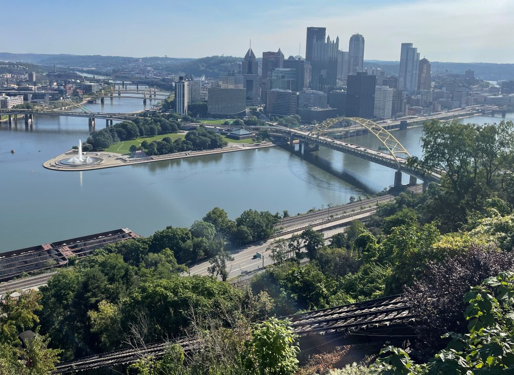 匹兹堡的地理位置优越,宾州又是东部大省,交通极为发达。去过的朋友都说不错,这次开车周游美国,特地在匹兹堡住一晚。未能免俗,先登高看匹兹堡全城,三条河流汇交于此地,果然是风水宝地。