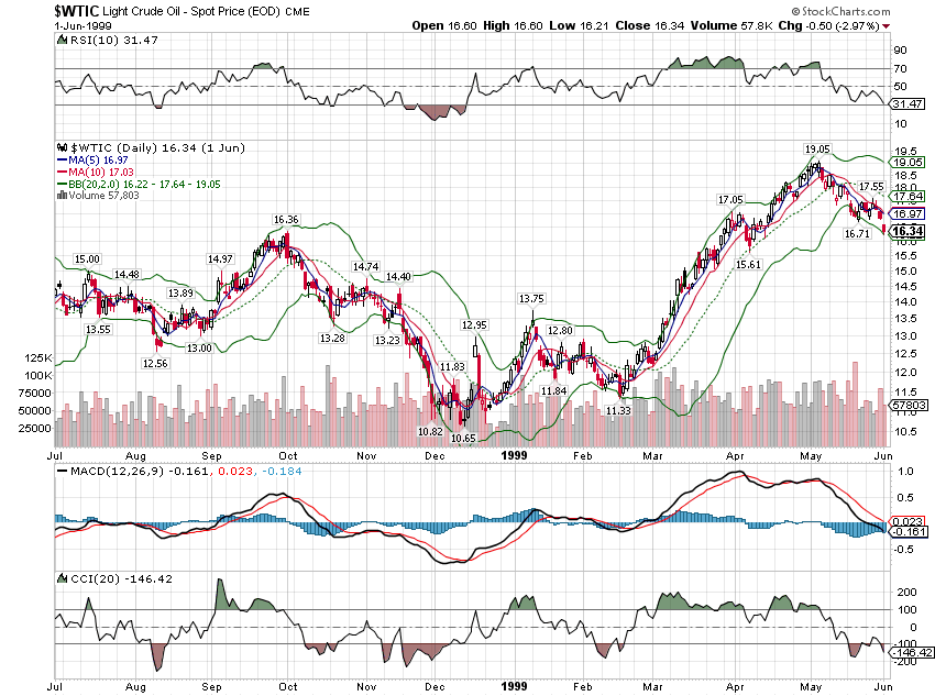 二十年来,油有四次大底:03/28/1994 $13.90, 12/11/1998 $10.65. 12/19/2001 $17.12, 2/12/2009 $33.55.