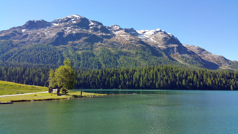 圣莫里兹 St Moritz 是个可以玩几天的好地方,有山中步道,有美丽的湖泊,但是这次没时间了。 早晨在St Moritz湖边转了转,湖中有人泛舟,湖水一如瑞士的所有湖泊,清澈澄碧,幽静美丽。