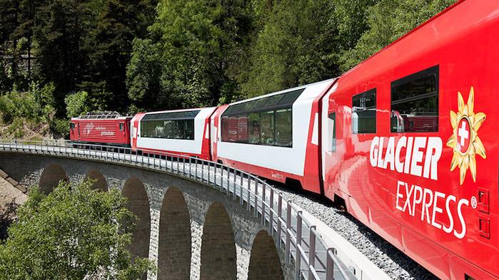 冰川快车名闻遐迩,是瑞士最受欢迎的全景观列车游览线,它连接起欧洲几大著名高山度假胜地:采尔马特Zermatt (马特宏峰所在地)和圣莫里茨(St Moritz)、达沃斯(Davos),全程行驶在阿尔卑斯山脉的正中间,驶过莱茵河峡谷(也称作“瑞士大峡谷”),越过欧洲大陆的分水岭,翻过上阿尔卑斯隘口(Oberalppass),跨越291座桥梁、穿过91条隧道,沿途还有迪森提斯(Disentis)等古老村落,是一条自然风貌和人文景观荟萃的风景线,总行程近7个半小时。