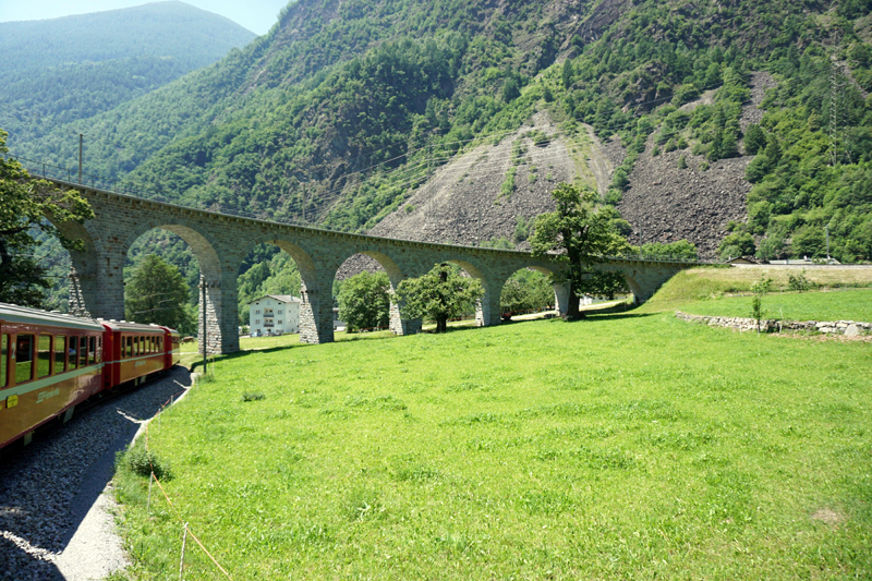 但其标志性景点----被联合国列为世界遗产的 65米高的环形高架桥Brusio spiral viaduct 则因背景不开阔,也没有想象中的高,远远不如预期。过桥之后,和同车厢的人聊起来,大家略微失望的感觉一样: 这就过去啦?