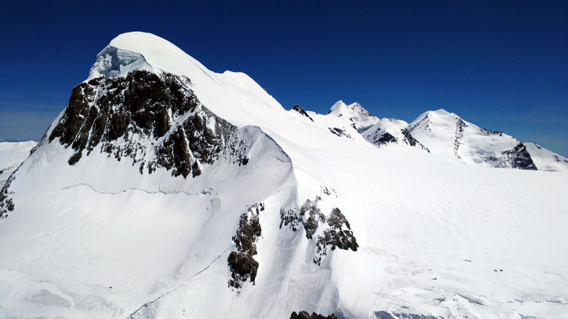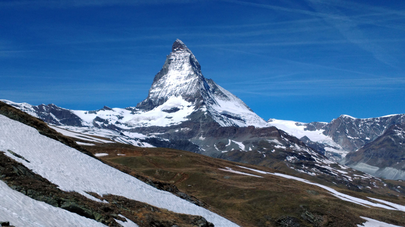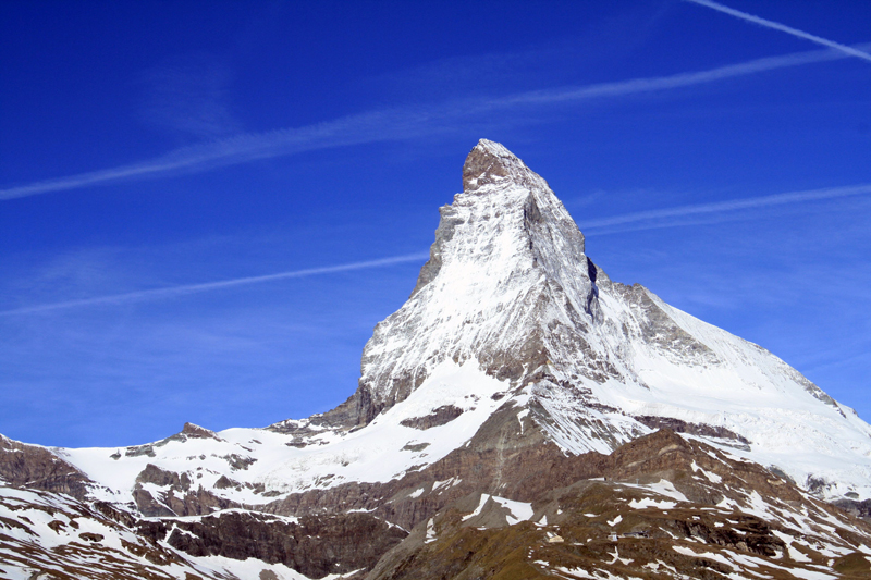 其实,马特宏峰一点也不孤独,它周围群峰环绕,共有36座海拔超过4000米的山峰。群峰之中,马特宏峰以其三角形椎体的独特身姿拔地而起,遗世独立,成为阿尔卑斯山脉标志性山峰。