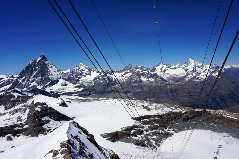 (二) 冰川天堂 Matterhorn glacier paradise:全欧洲最高的观景点,360度全景揽胜,立于群峰之巅,近有马特宏峰,远眺瑞士最高峰Rosa以及法国境内的勃朗峰Mont Blanc,视野最为开阔宏伟大气。