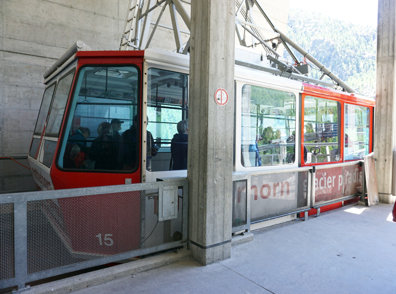 去冰川天堂观景台Matterhorn Glacier Paradise须从Zermatt 的 Gondola Station 出发,换两次缆车方可到达,从Zermatt镇 的 Gondola Station 乘gondola 缆车至Furi,换乘缆车至Trockener Steg,然后再换缆车cable car 至小马特宏峰 Klein Matterhorn。 最后从Trockener Steg冲上山顶的是大缆车。