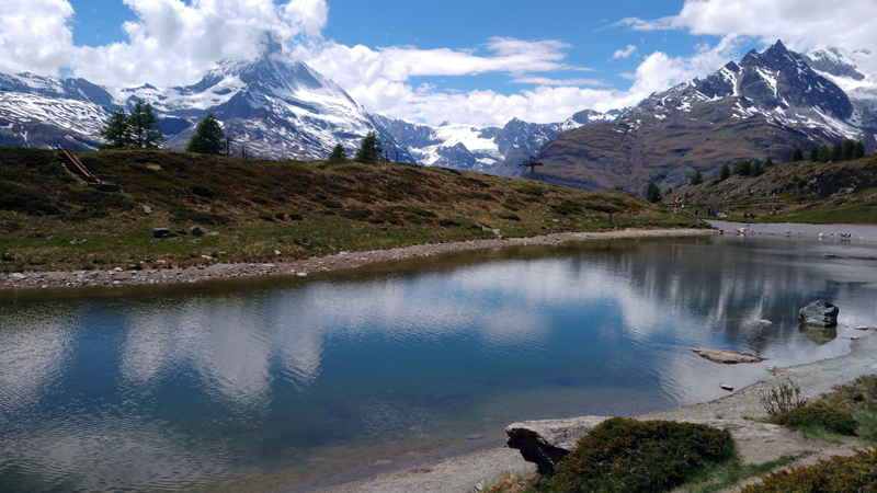 五湖步道顾名思义,有五个湖,分别是Stellisee,Grindjisee,Grüensee,Moosjisee以及Leisee ,可以从不同侧面和角度看到马特宏峰及其倒影。