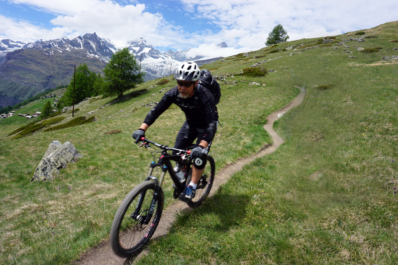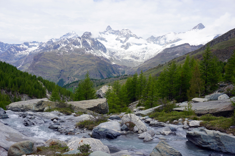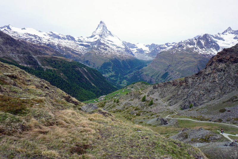 一路下坡,在雪山青松野花牛铃的伴随下回到Zermatt。 这不是条有名的trial,也不曾在我们的hiking计划中,因为信步得来,格外喜欢。
