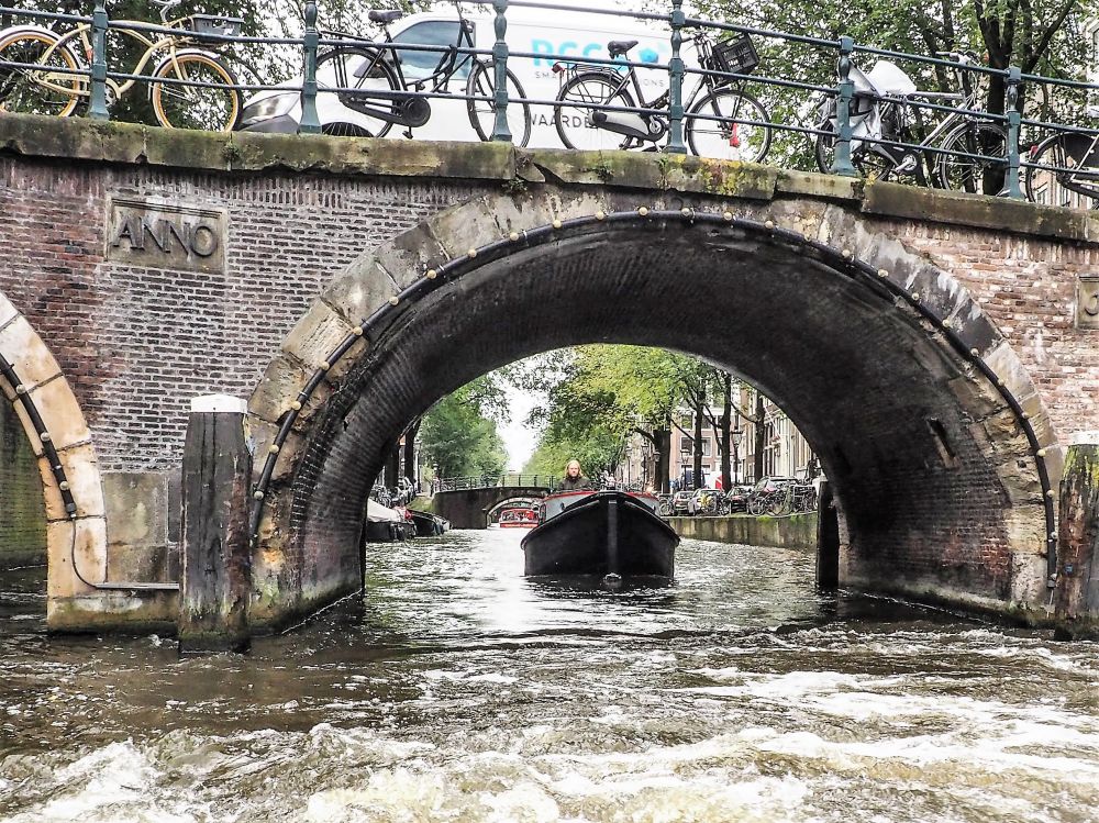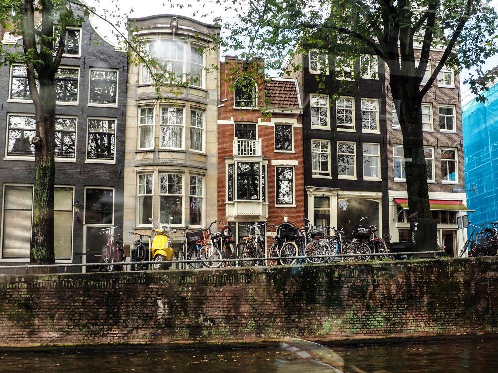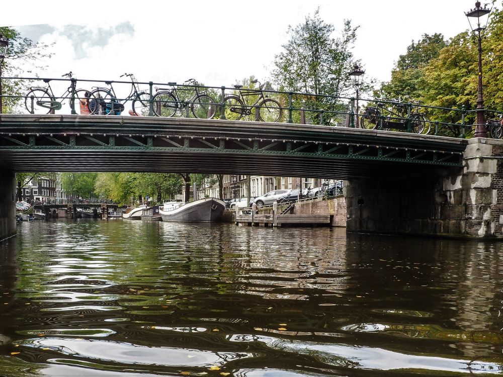 这就是阿姆斯特丹的旅游船,以及一路上从船上见到的桥,街道,房屋,和停放的荷兰人引以为豪的自行车。
