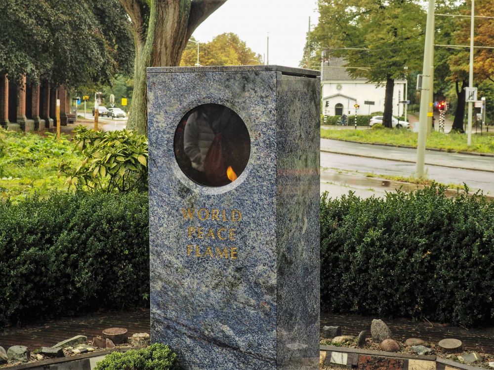 法庭门外有个和平长明灯。