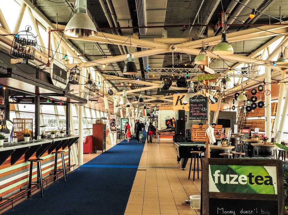 海滩有百米长的栈桥伸入海内。这是个室内栈桥,里面排满了小吃店。