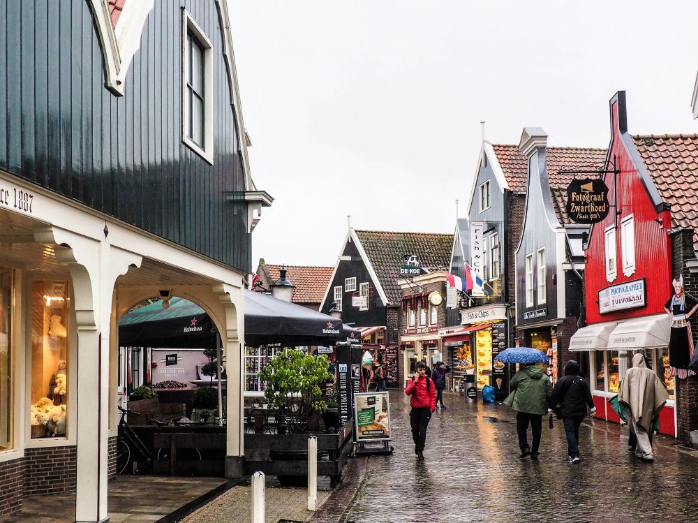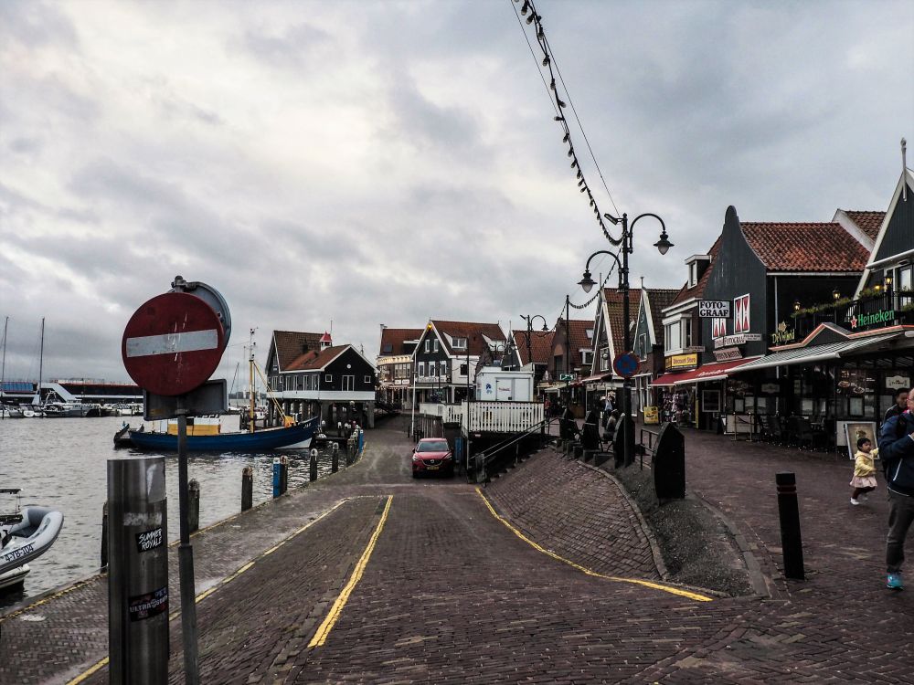 阿姆斯特丹北部的渔村福伦丹。以前福伦丹是海湾边的村子,但自荷兰在海湾外修起了拦海大堤后,海湾成了艾瑟湖。福伦丹也从渔村进化成旅游胜地。虽然已经不是渔村,但还是以炸鲱鱼出名。