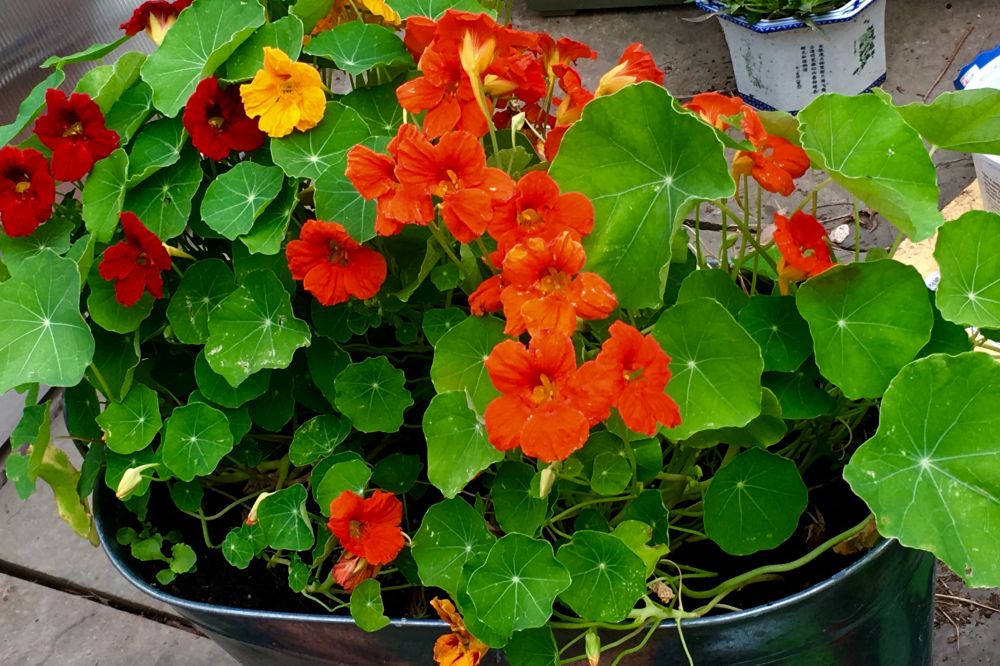 旱金莲,听说叶子和花都可以吃,我没有试验过。试吃后跟大家汇报一下味道如何。