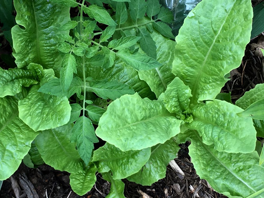 莴苣长的很茂盛,但是检查杆子还是太细。大约需要等半个月才能吃上。