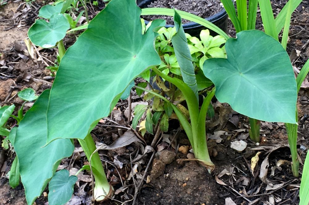 种花床上的芋头。