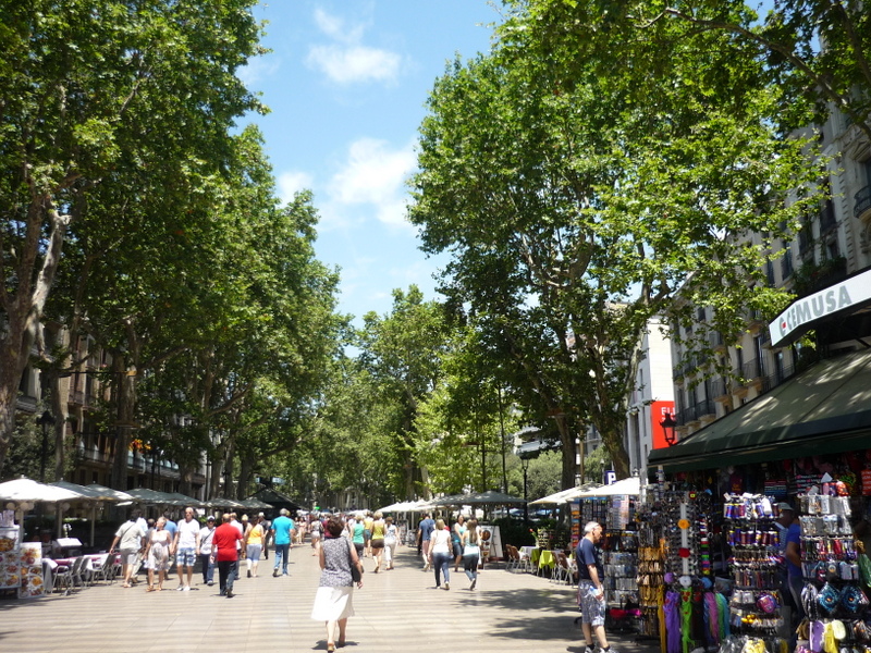 我们到的时候是中午,下午就到兰布拉大道逛一了下。这条路是连接加泰罗尼亚广场和哥伦布纪念碑的,一定要步行,因为这条路并不长,才一公里。街道两旁有很多美丽的教堂和学院,走在优雅的林荫大道上,饱览巴塞罗那市中心最繁华的风光。