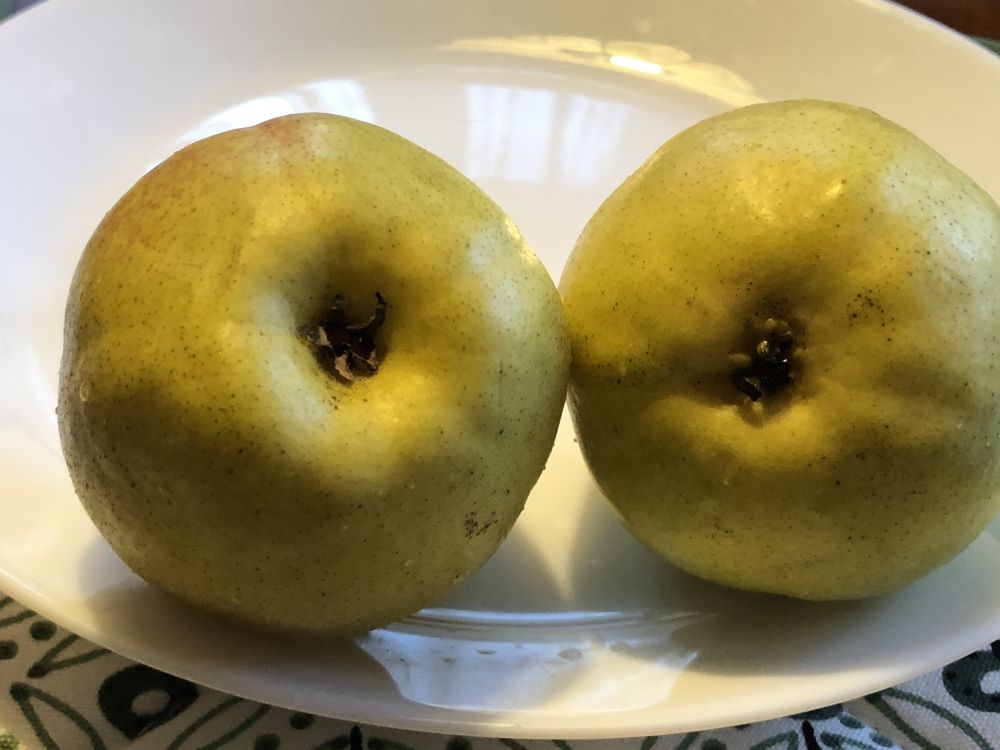 其他不知道,但是这个新疆库尔勒香梨我是知道的。有一位朋友在新疆出生长大,她告诉我选这种梨子的时候一定要选“母”的才甜,肉质才细腻。以前这个梨在国内还不大好买,偶尔看到也是“公”的多,价格很贵,现在倒是很普遍了。猜猜看那个是雌的哪个是雄的?