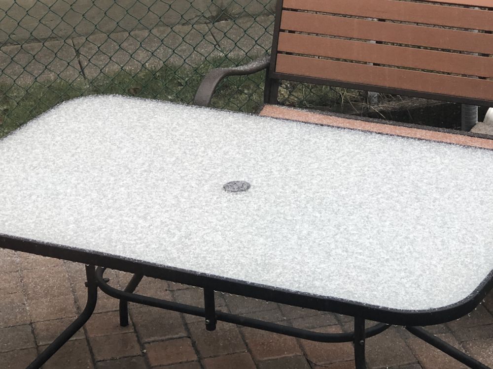 晾衣绳上结了冰,桌子上厚厚一层。