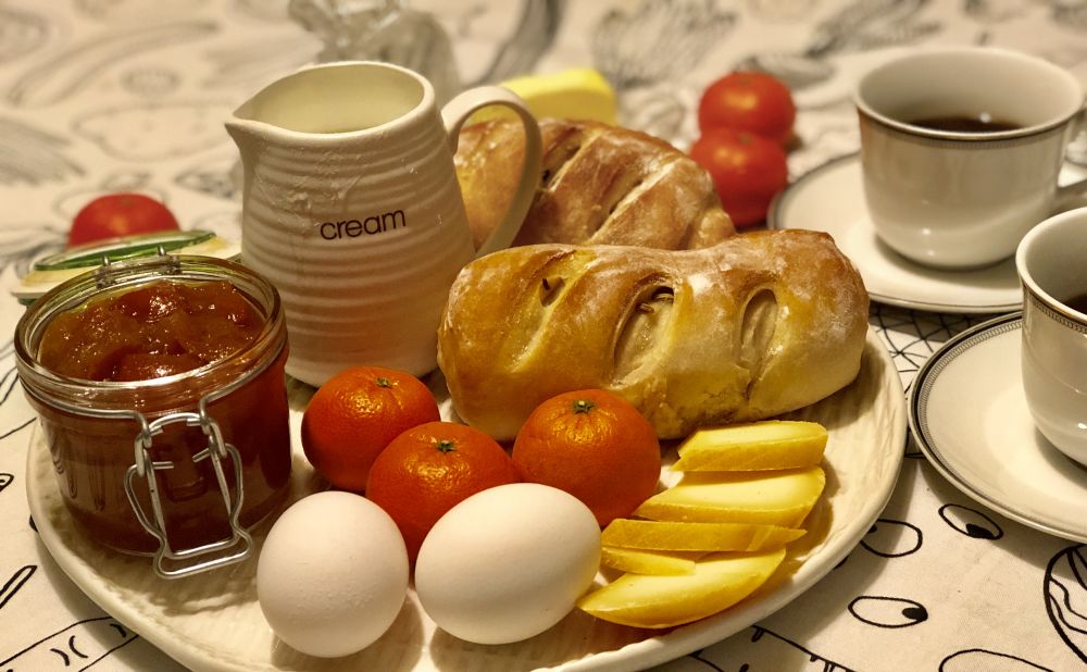 我居然两点多就醒了,熬到四点多,躺不住起来烤了两个面包。领导还在呼呼,我自己先吃起来吧。
