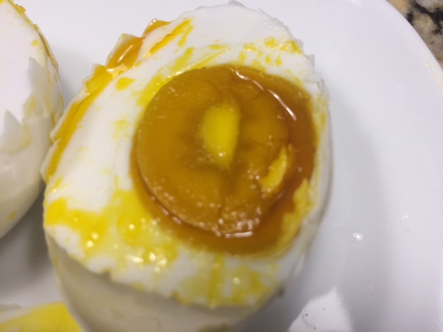 最后给大家上个咸鸭蛋。在当地农场买了一些有机鸭蛋,LG 腌的。