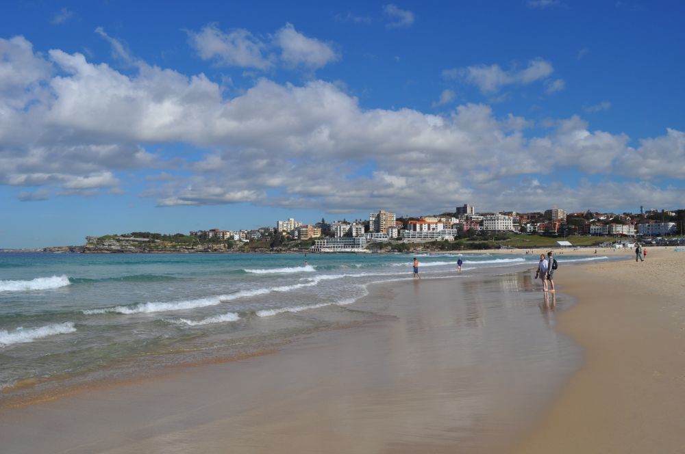 邦迪海滩(Bondi Beach)是悉尼最著名的海滩之一,海岸线呈月牙形,海滩上的沙质柔软、蓝天碧海,风景优美,是欣赏日落、日出的好地方。邦迪在澳洲土著语里意为"碎石浪",非常恰当地描述了这个海滩的情致。每逢阳光明媚的日子,悉尼人就会聚集在邦迪海滩上享受阳光的沐浴。邦迪海滩与悉尼的其他海滩一样,海浪很大,不太适合游泳。许多人就在这里冲浪,因而这里被称为"冲浪者的天堂",澳洲人对水上运动的热爱可见一斑。