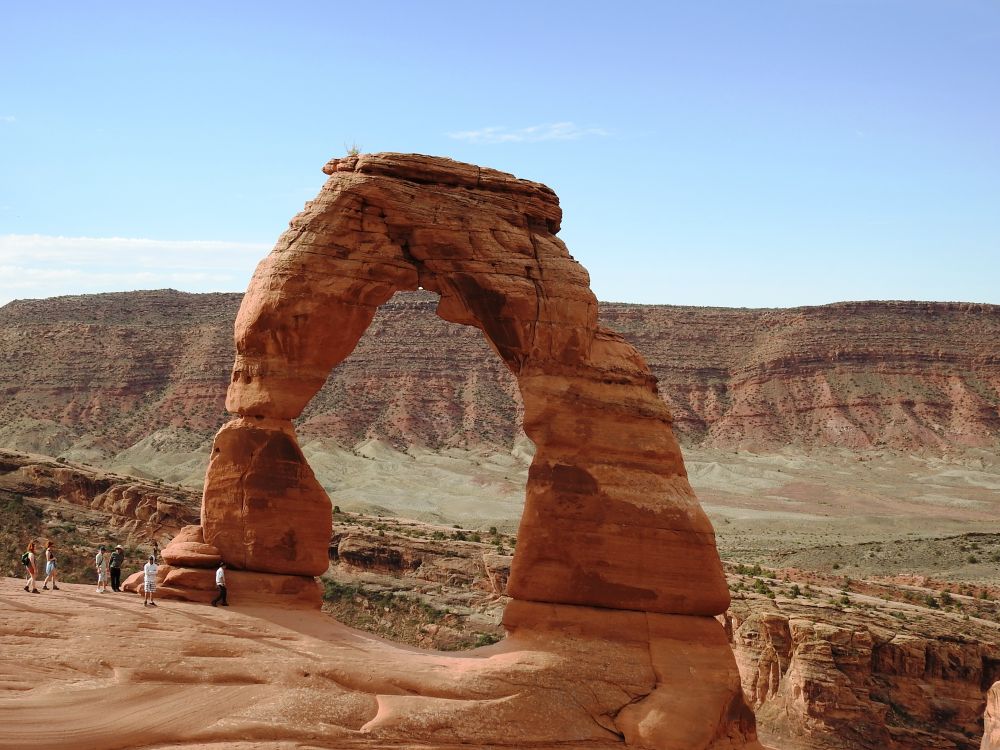 然后继续西行进入犹他州,时已接近傍晚,留宿犹他的摩押小镇(Moab),因为这里离拱门国家公园很近,第二天一大早就奔拱门公园(Arches National Park)转了半天,看到各种石拱门,其中以精致拱门最为著名。