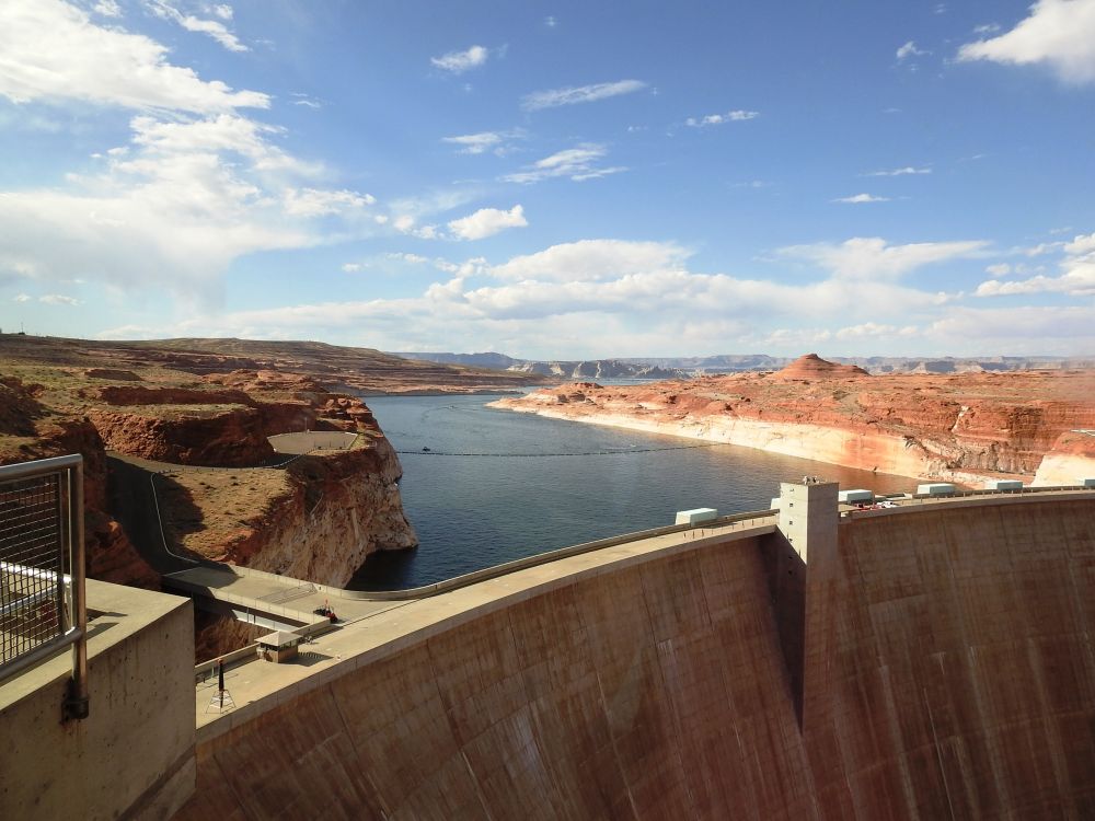 至傍晚启程转向东南方向到了亚利桑那州北部小城佩吉(Page),先去看了鲍威尔湖(Lake Powell)及其大水坝。