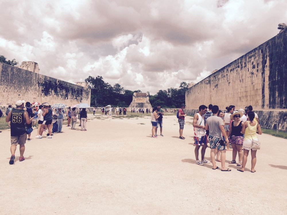 大巴在通往奇琴伊察的高速公路上飞驰,墨西哥跟中国一样高速公路也收费,路上车很少,路两边都是低矮的热带植物,没有任何农作物,也没有看到居民区。我们到达奇琴伊察时已是中午12点15分,路易斯告诉我们只有2个小时的游览时间,下午2点半前必须返回大巴。当天气温高达100度,闷热难忍,但是奇琴伊察游人如织。