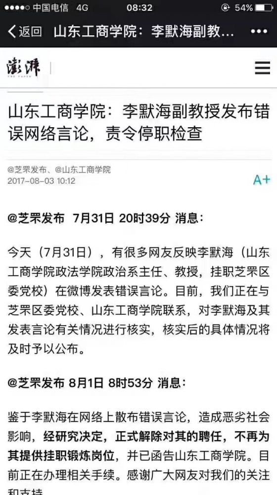 因言受打击报复,前有老毕,后有邓相超,现在又有北师大的史杰鹏和山东工商学院的李默海,都是因言遭到开除公职。恐怖在蔓延,文革在死灰复燃。本来以为朝鲜是中国的昨天,现在看来它又要成为中国的明天。