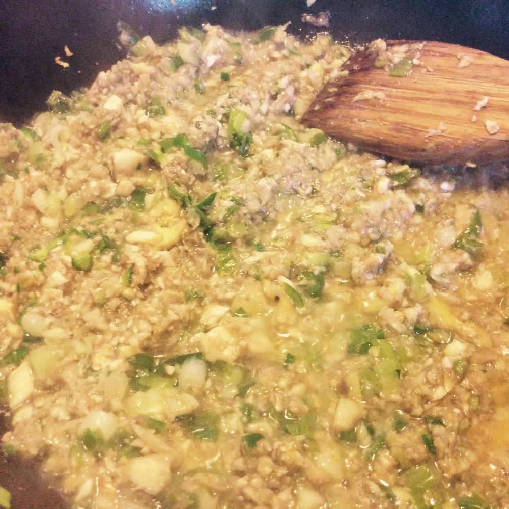 里面都是好东西:蒜,姜,葱,辣椒,金钩,蘑菇。